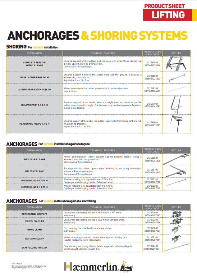 - Reinforced ladders, 250 kg payload and up to 40 m of working height.