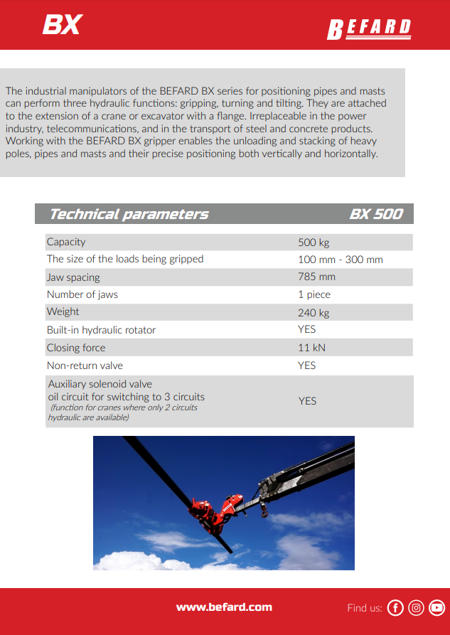 - BEFARD INDUSTRIAL MANIPULATOR FOR PIPES & MASTS BX - 1000KG