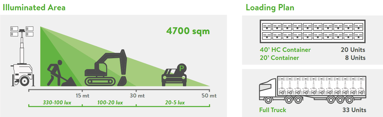 The application of LED technology on lighting towers is oriented towards reducing fuel consumption and CO2 emissions, improving at the same time the performance and life of the lamps.