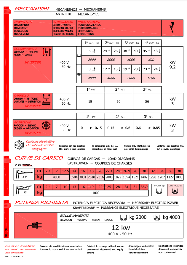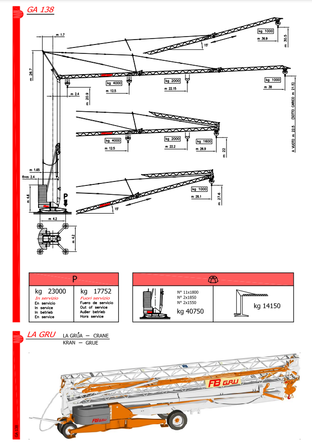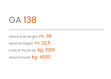 - SELF ERECTING CRANE GA 138 MAX LOAD 4000 KG - 12.5Μ & 100KG - 38M & 22.5M HEIGHT
