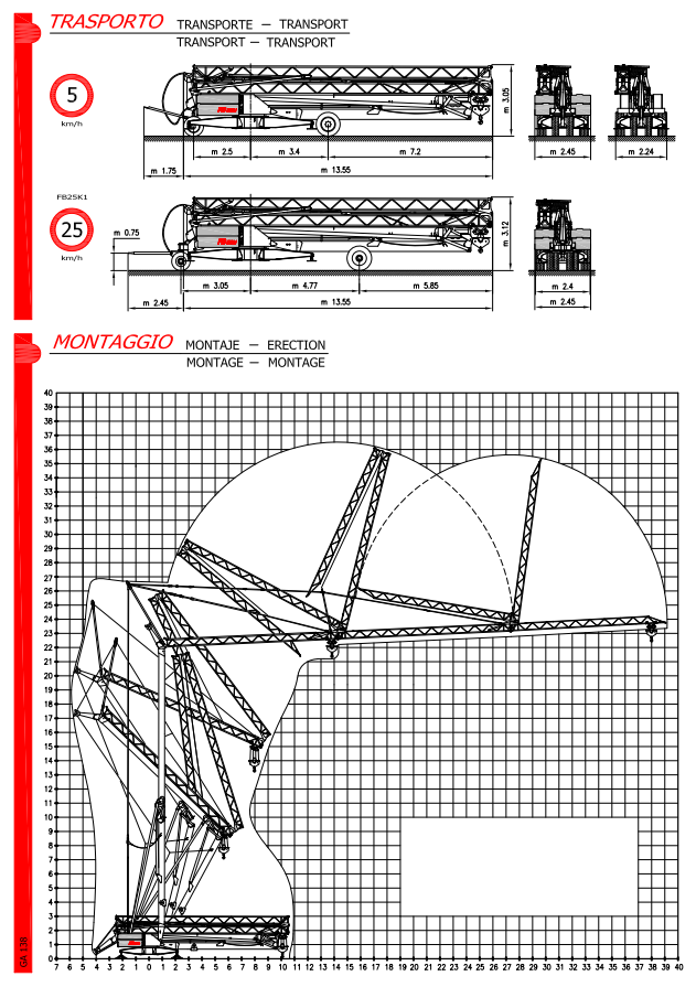 - It would take just few times to you for being operative on the building site thanks to the self-erecting GA138, whose strength relies in the fast and smooth erection process.