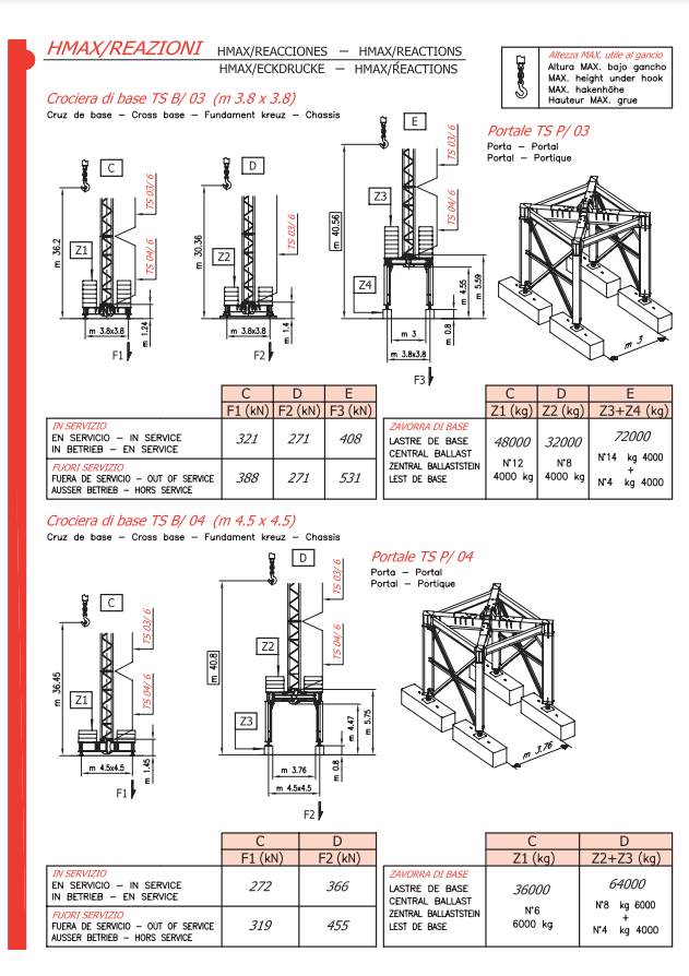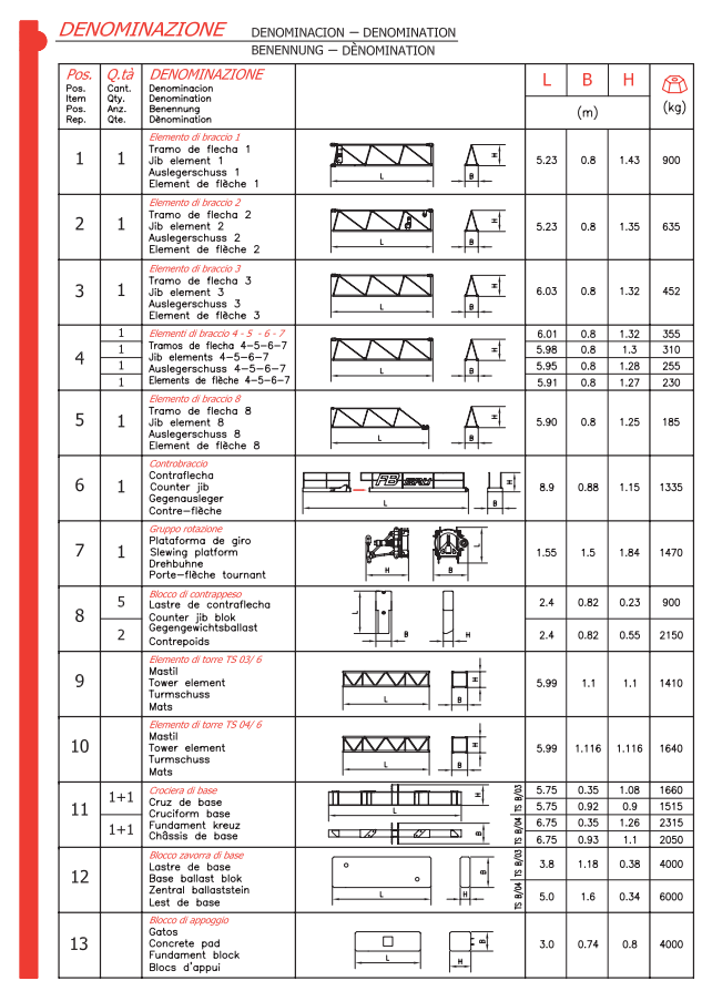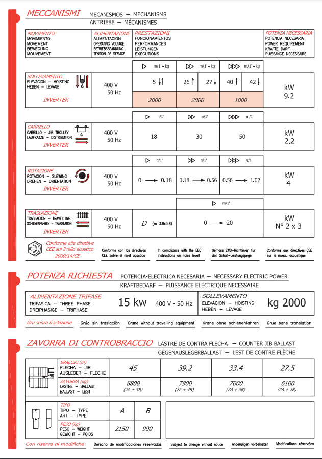 - A top sleewing crane which, despite of the large dimensions shown by its 45 meters length jib, can be moved with great flexibility.