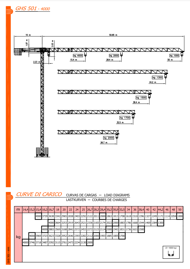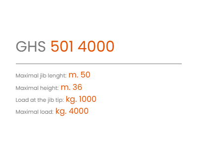 - 50 meters length jib and 4000 kg maximum load, along with transportation easiness: these are the main characteristics of this machine, designed with an eye on the particular structural requirements of construction companies.