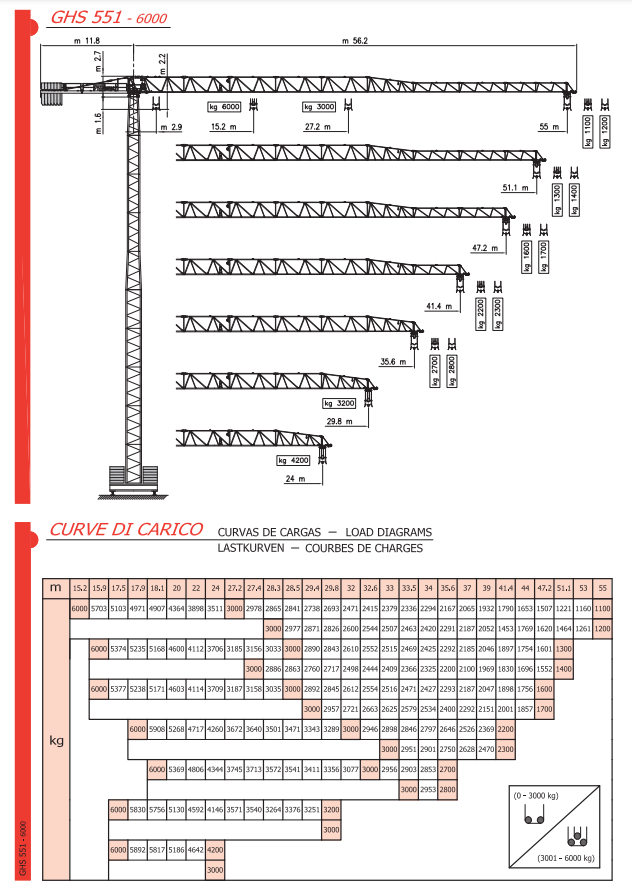 - TOWER CRANE GHS 551 MAX LOAD 6000KG - 18.1M LENGTH & 1100KG - 55M LENGTH & 78M HEIGHT