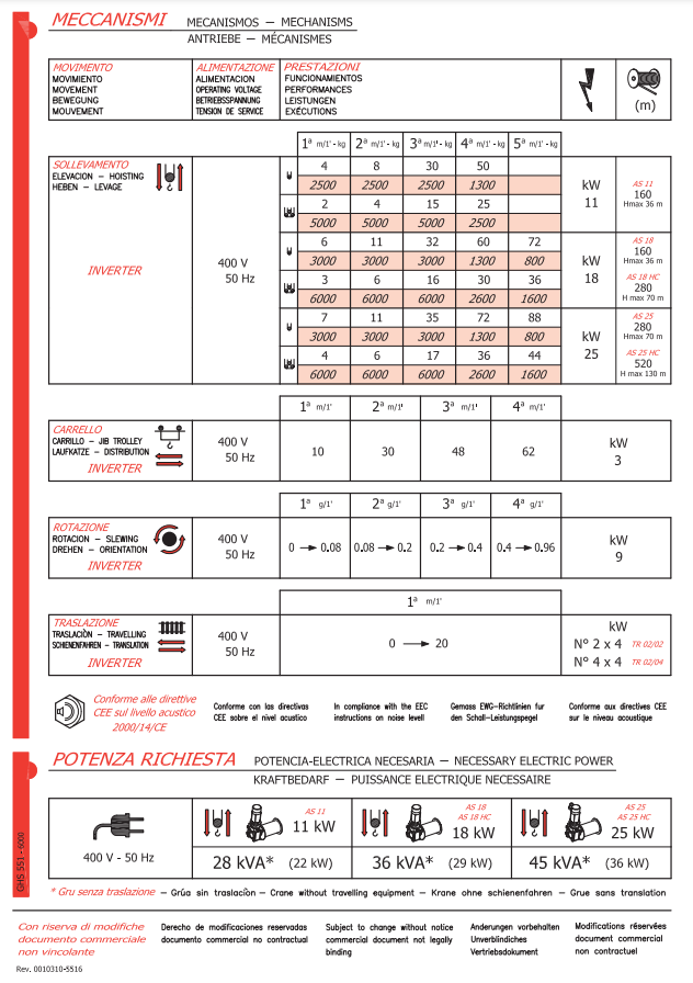 - Inverter for the control of hoisting movements, slewing and trolley