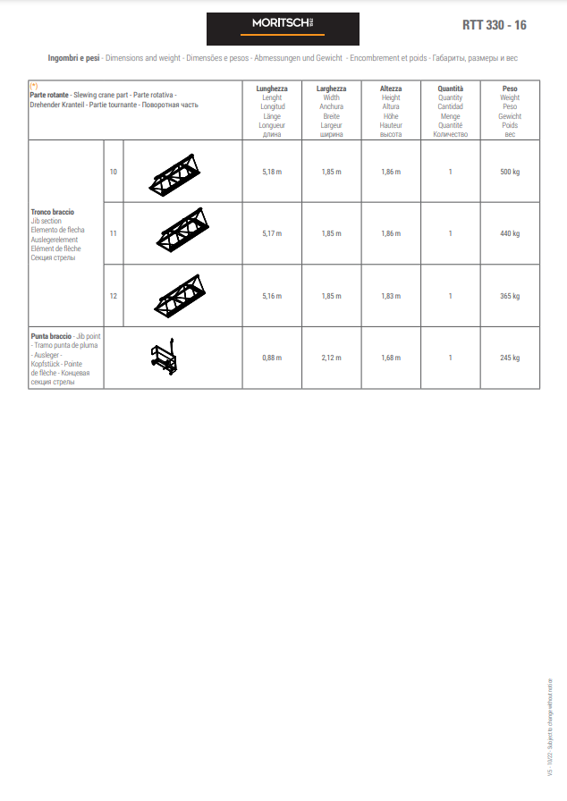 - The RTT range is a low top designed for the first time by Moritsch Cranes for a standard range of large cranes
