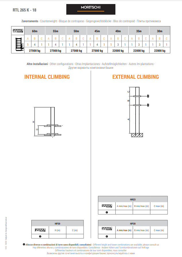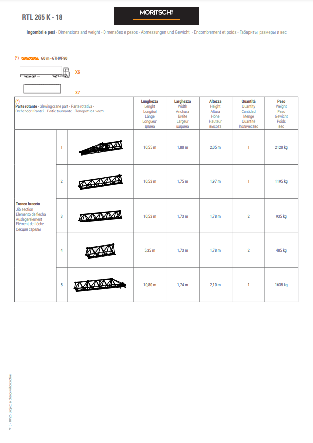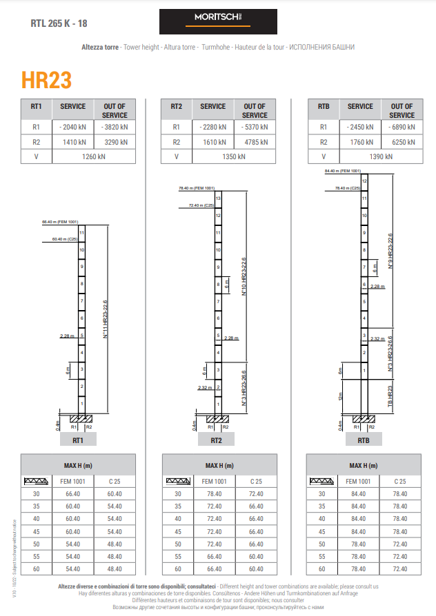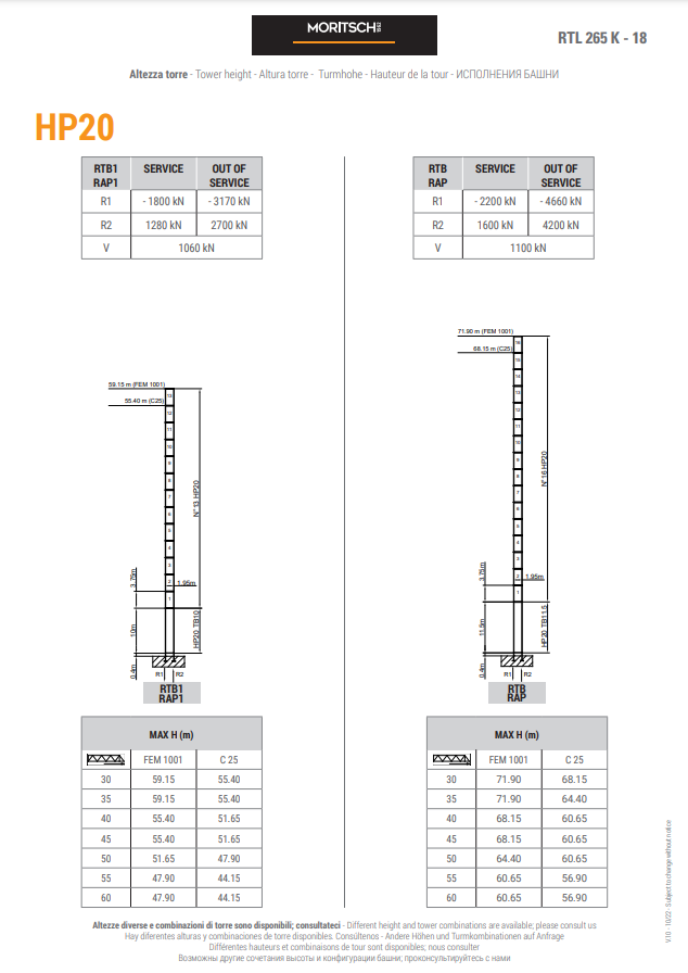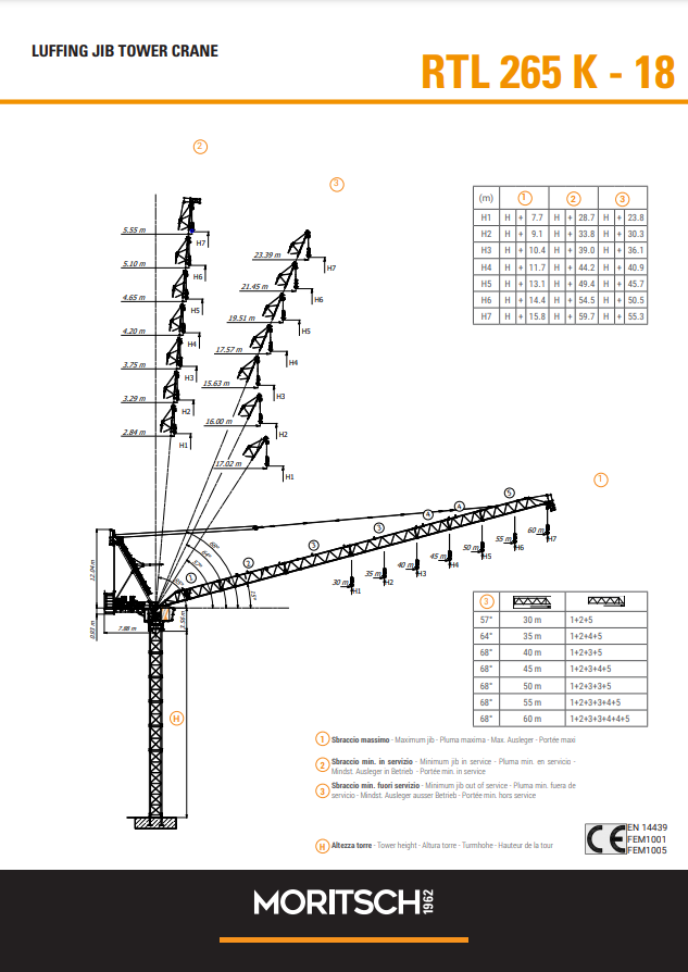 - LUFFING JIB TOWER CRANE RTL265K MAXIMUM CAPACITY 18.000KG - 60M LENGTH & 64,40M HEIGHT