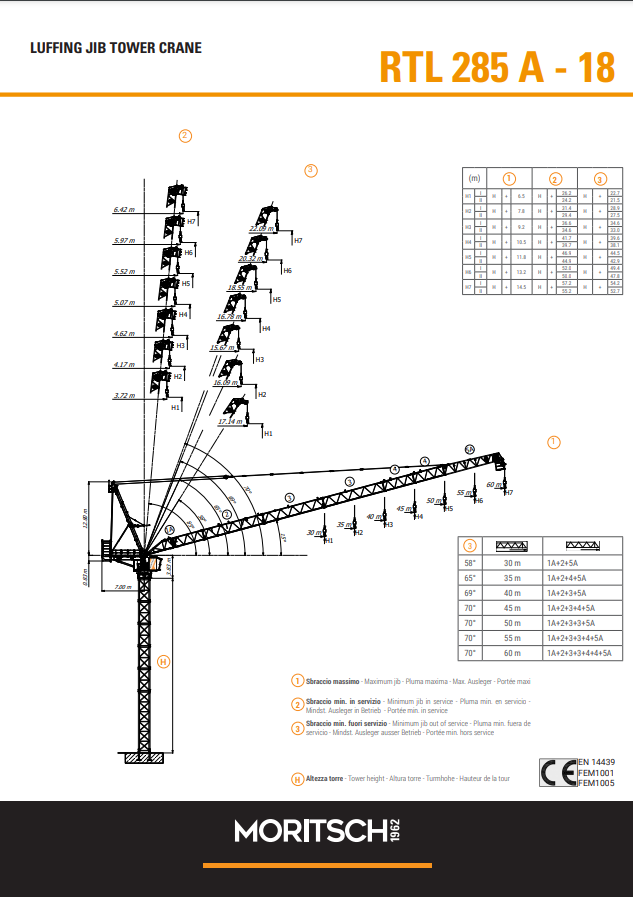 LUFFING JIB TOWER CRANE RTL285A MAXIMUM CAPACITY 18.000KG - 60M LENGTH & 72,40M HEIGHT