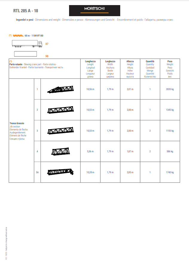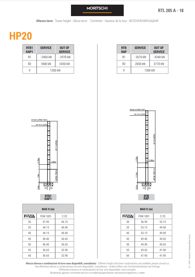 - LUFFING JIB TOWER CRANE RTL285A MAXIMUM CAPACITY 18.000KG - 60M LENGTH & 72,40M HEIGHT