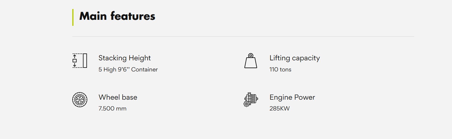 - Reach stacker Model RSUP-100-75-SHR specially designed for handling slabs from the rolling mill up to 110 ton!