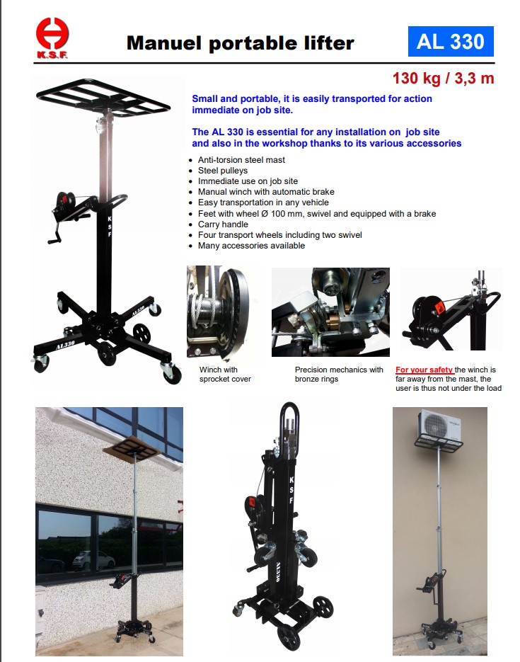 Traverse lift - telescopic lift AL-330, 120 kg load capacity, 3300 mm stroke