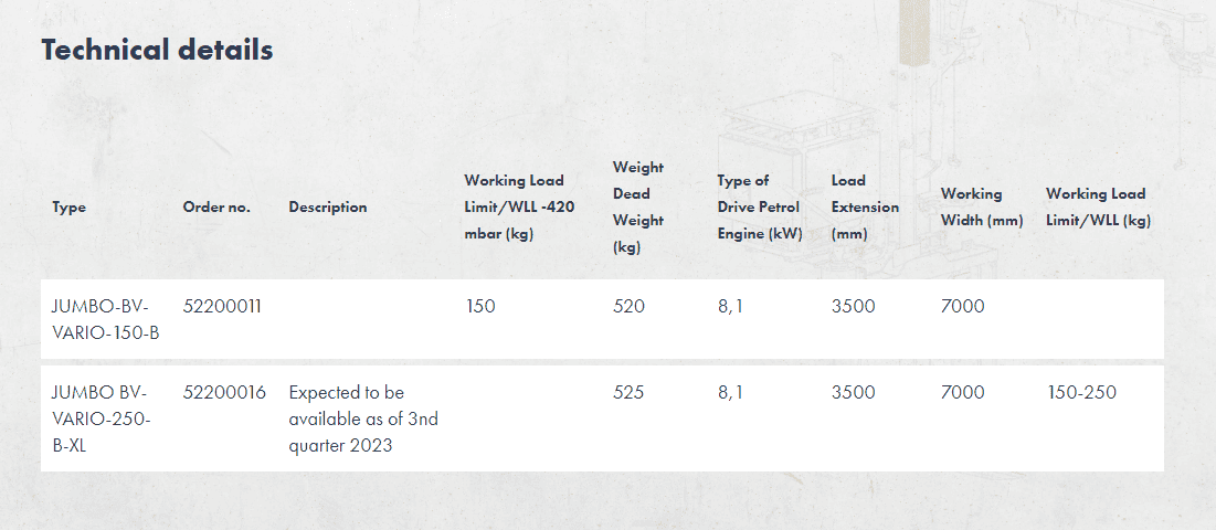 - New: With reinforced boom, 250 kg (550 Ibs) payload is possible at full extension. (only art. no. 52200016).
