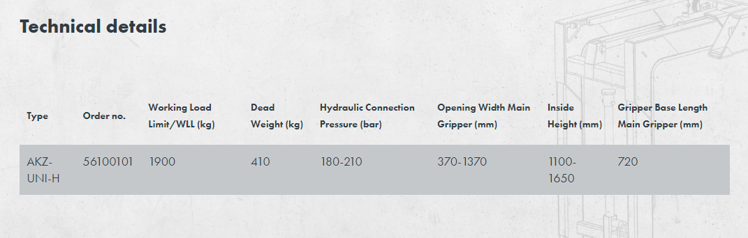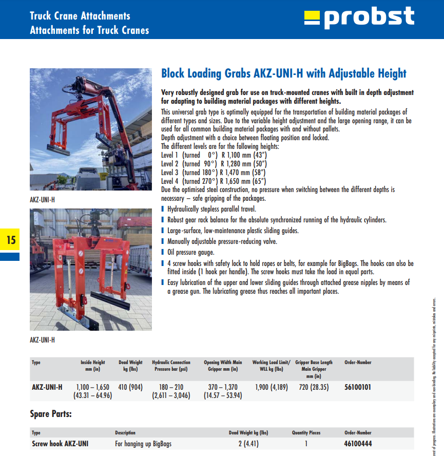 Probst AKZ-H UniGrip | Block Loading Grab with Adjustable Height for loads up to 1900 kg