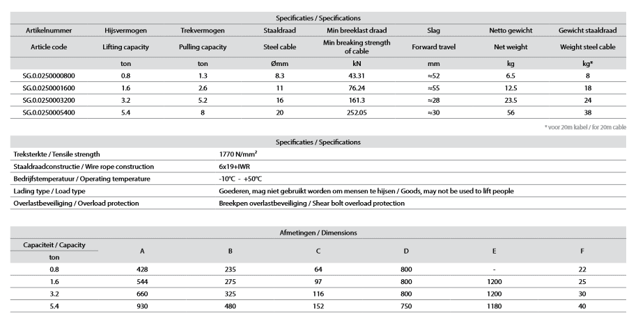 GRIP PULLER 0,8ΤΟΝ 20Μ WIRE ROPE