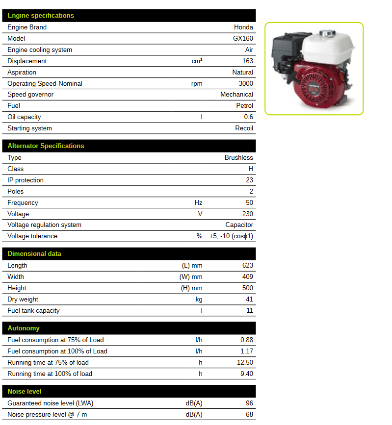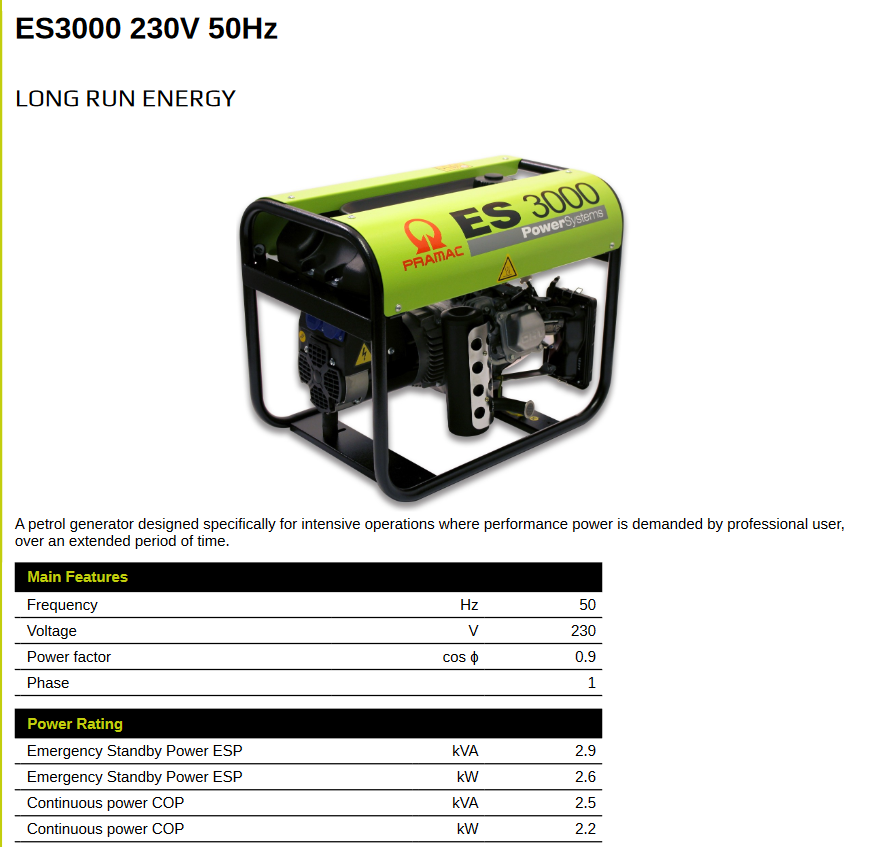 GENERATOR SERIES ES3000 230V 2,9 kVA