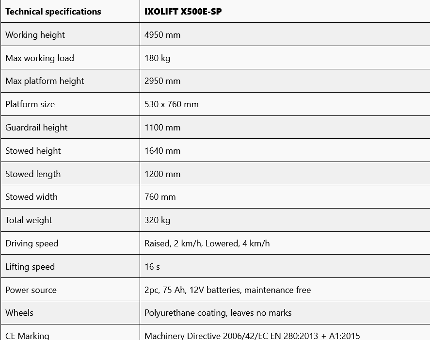 IXOLIFT X500E-SP ELECTRICAL ADJUSTABLE WORK PLATFORM for 4.9 mm working height