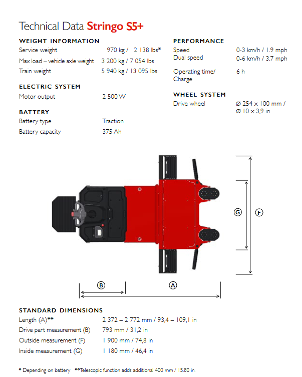 Stringo PLUS has all the advantages of the regular Stringo, PLUS next-level features. With an upgraded front-section, this robust model is designed for challenging environments, high-frequent use, and long-distance moving. The outstanding terrain capability enables you to smoothly ride over obstacles or transitions that come in your way – without losing speed or precision.