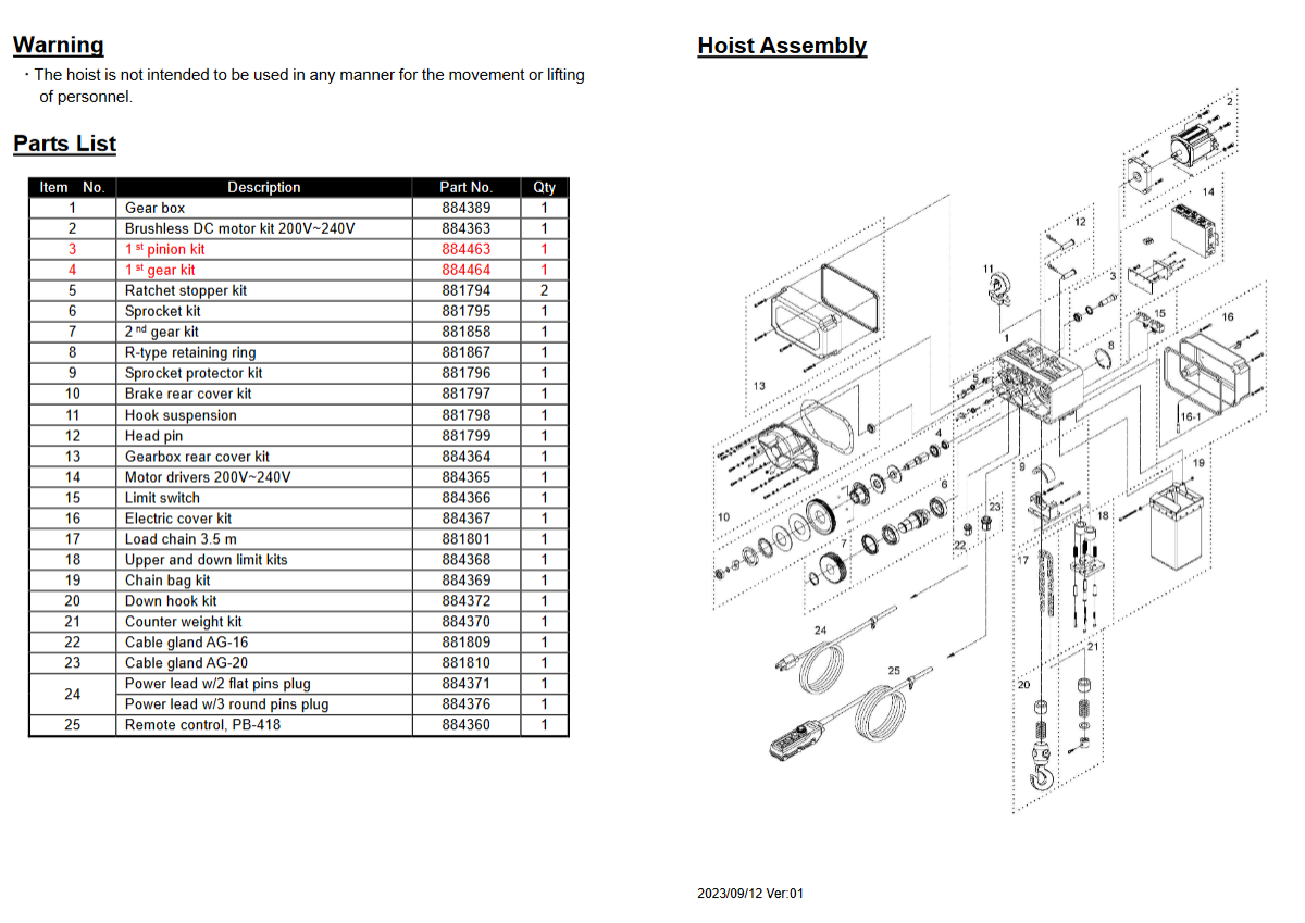 the Brushless Motor Chain Hoist, which is equipped with six major