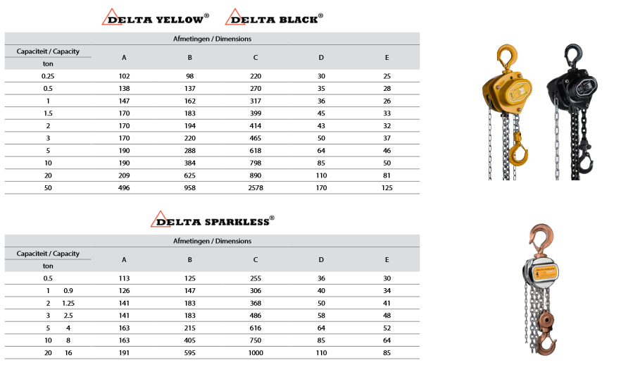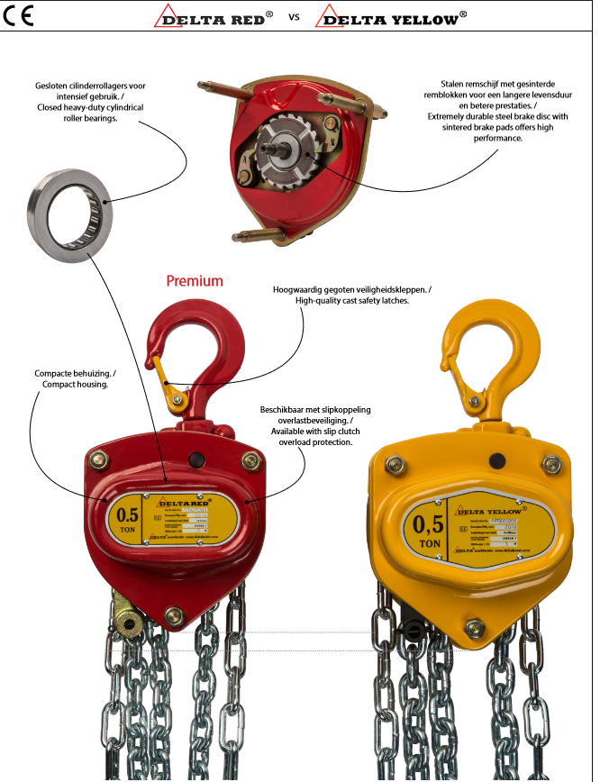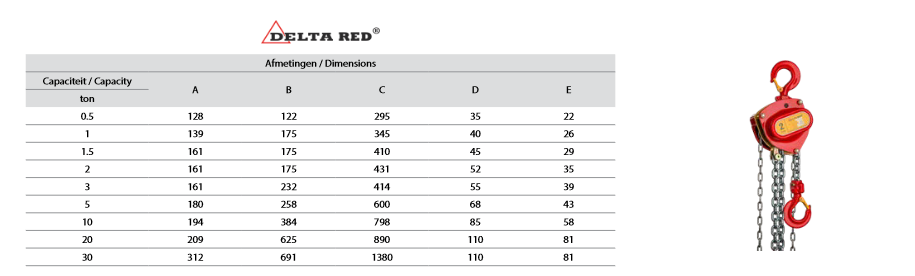 Premium manual chain hoist 1000KG 3M DELTA RED