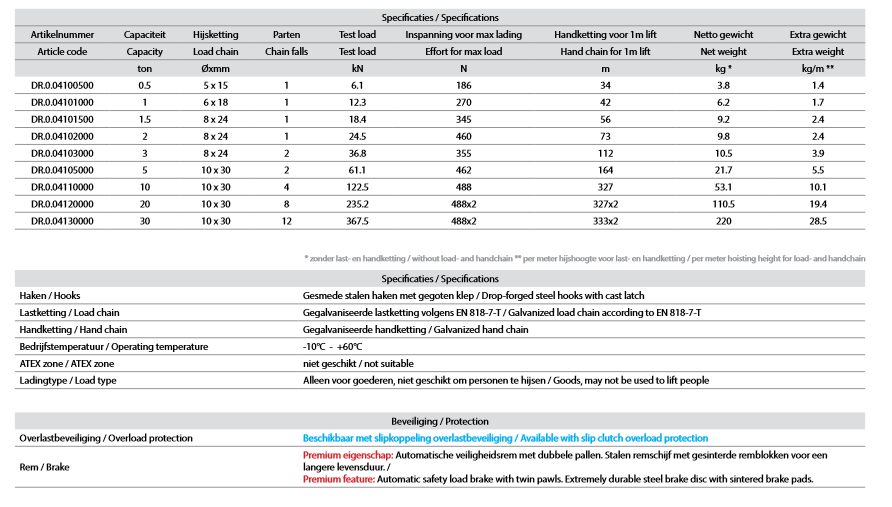 - 3, 6 and 10 meter hoisting height are standard stock items. Other hoisting heights upon request.