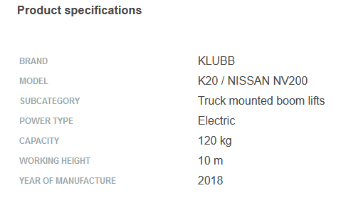 USED  ARTICULATED MOUNTED BOOM LIFT KLUBB TRUCK  120KG 10m (2018)