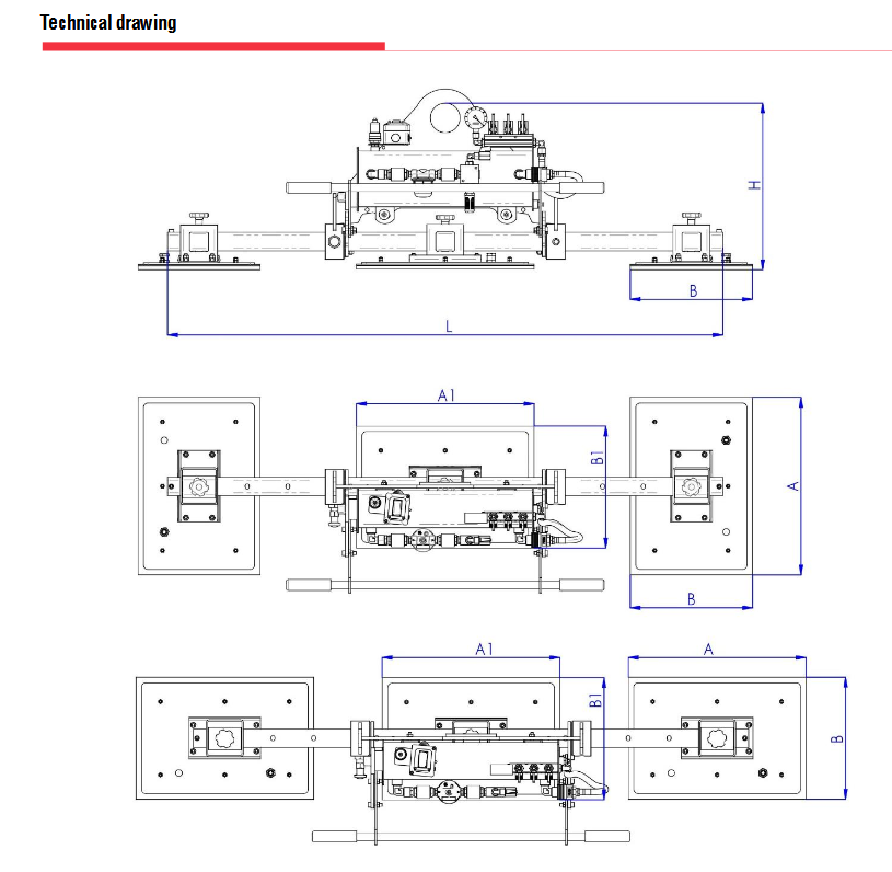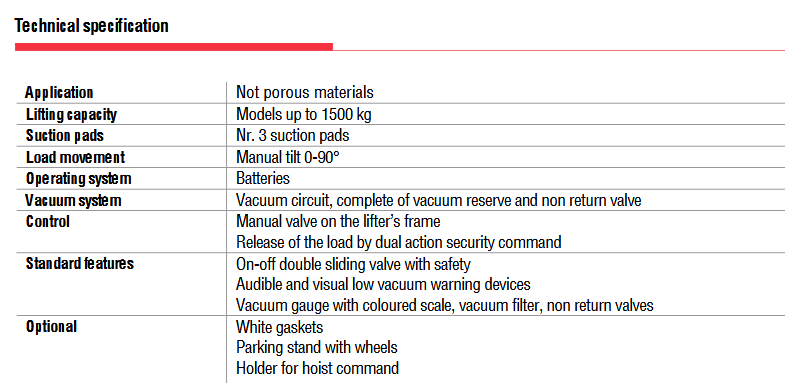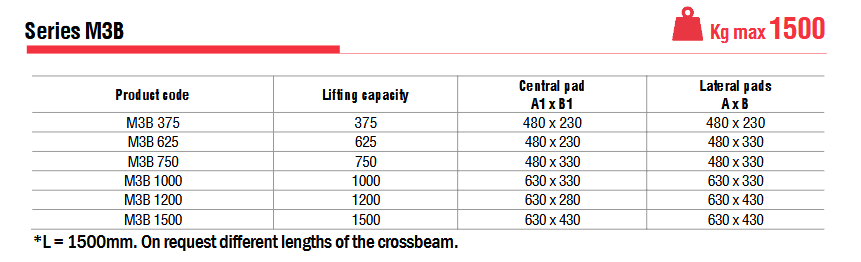 The M3B is a series of Vacuum Lifters which contains a wide range of 3-plate models with capacities ranging from 375 kg to 1500 kg.