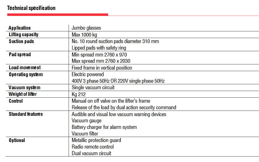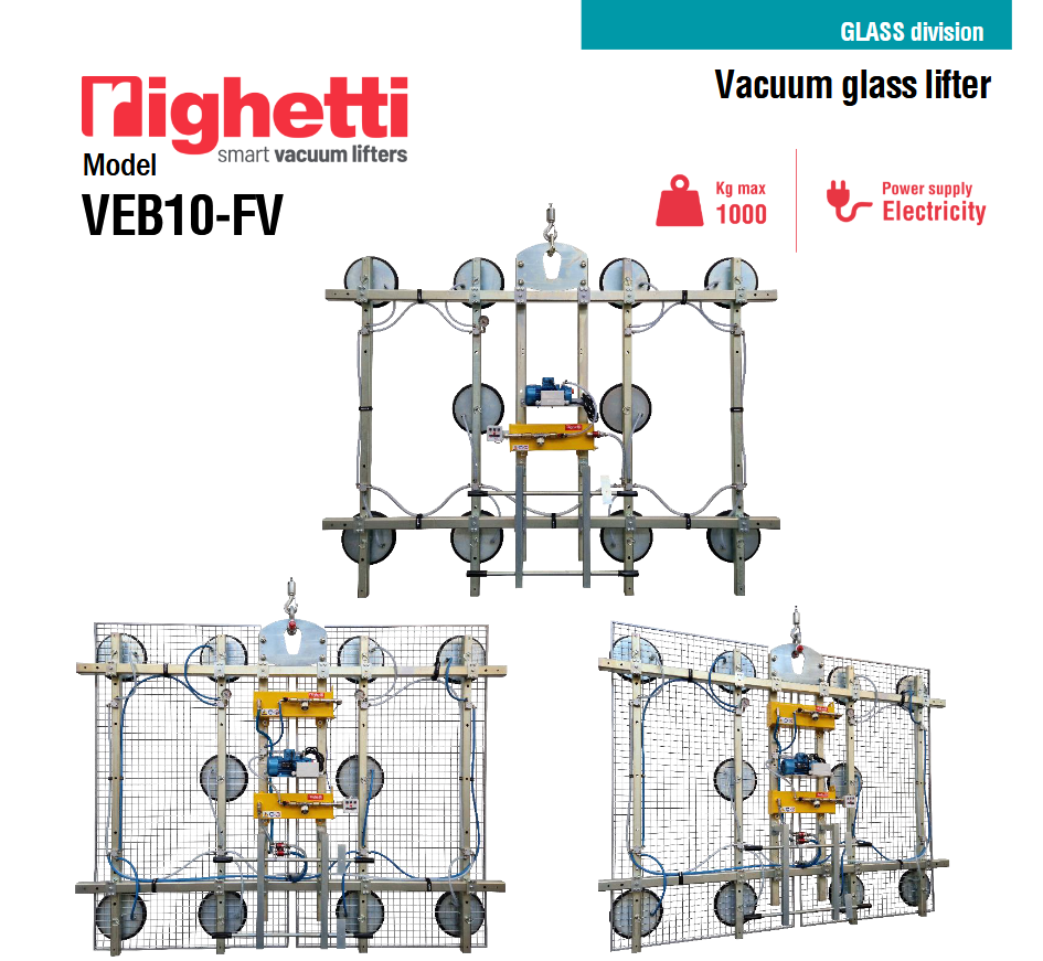 - ELECTRIC VACUUM LIFTER for GLASS RIGHETTI VEB10FV 1000kg 220V-380V