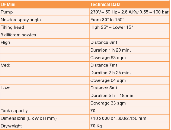 The Dust Fighter DF 15000 is a dust suppression unit with a maximum range of 50 metres, ideal for medium size outdoor areas.