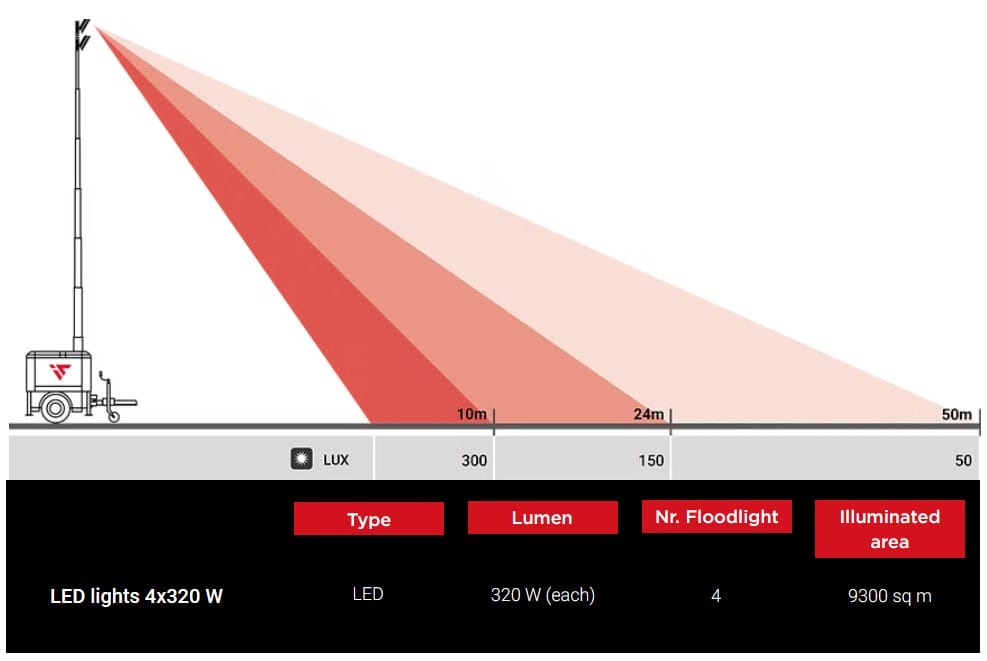 ITALTOWER LIGHTING TOWER WITH POWER GENERATOR & HYDRAULIC LIFTING SYSTEM POLAR UP TO 8.5M ILLUMINATED AREA 9300SQM