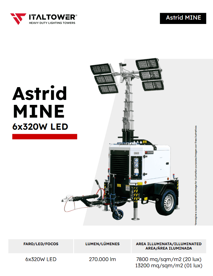 - ITALTOWER LIGHTING TOWER WITH POWER GENERATOR & HYDRAULIC LIFTING SYSTEM ASTRID MINE UP TO 8.5M ILLUMINATED AREA 13200 SQM