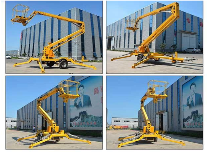 The trailer fold arm boom lift has a compact structure, adopts new high-quality steel, high strength, light weight.