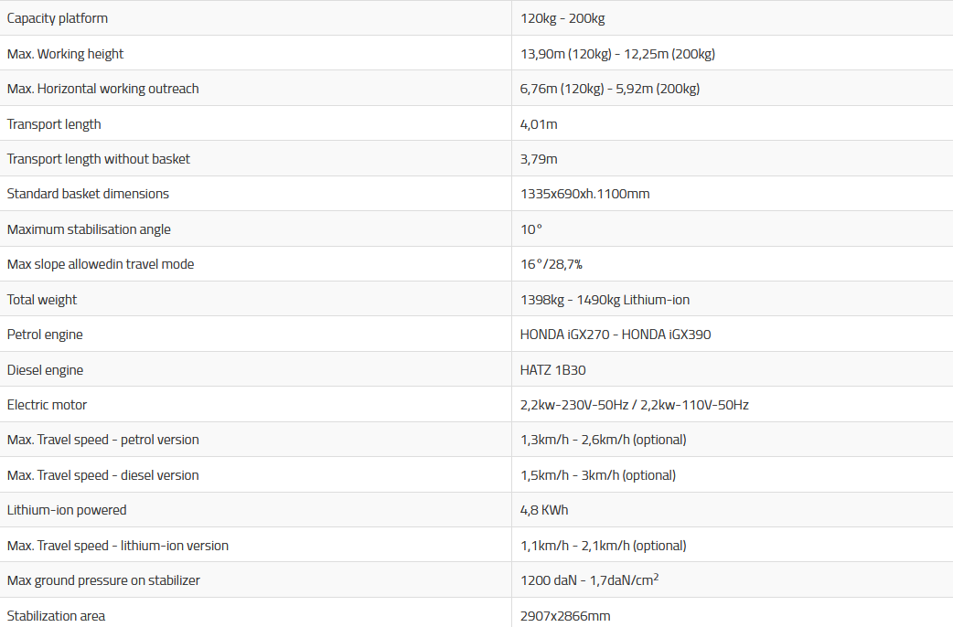 The light and compact aerial platform for working at height that weighs just 1380 kg
