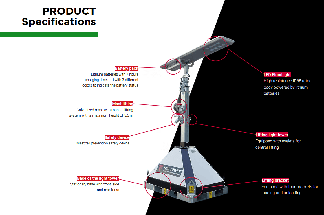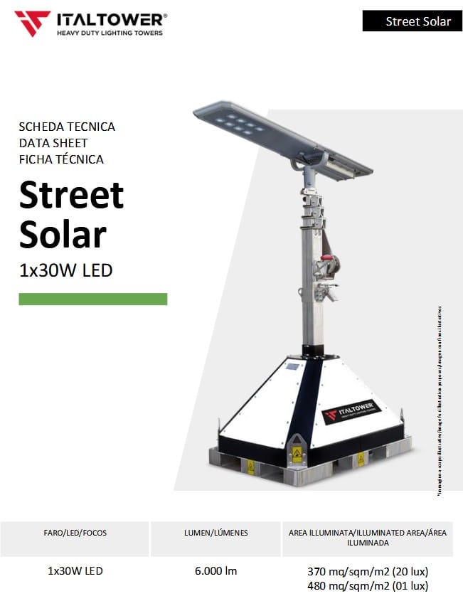 - ITALTOWER SOLAR LIGHTING TOWER WITH MANUAL LIFTING SYSTEM STREET SOLAR ILLUMATED AREA UP TO 480 SQM