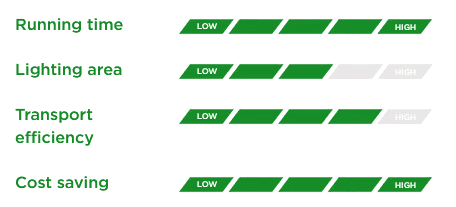 Full Solar, the first fully solar lighting tower. Its 4 multi-LED lights can illuminate up to 2500 square metres thanks to the monocrystalline silicon..