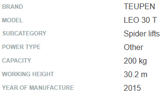TEUPEN USED self-propelled TELESCOPIC CRAWLER LEO 30T 30.2M 200kg (2015)