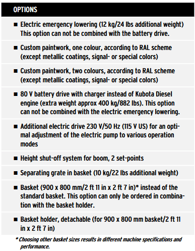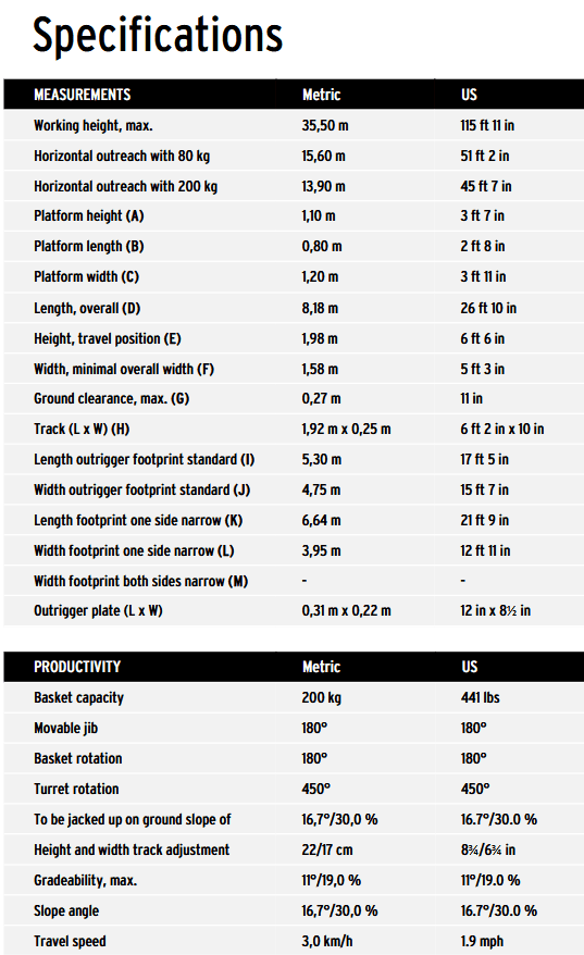 - Maximum working height of 35.5m