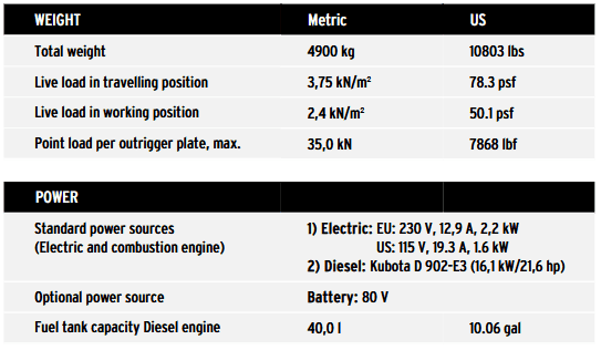 - Dual power source: 230 V electric motor for silent and zero-emission work indoors and a powerful Kubota diesel engine for outdoor use.