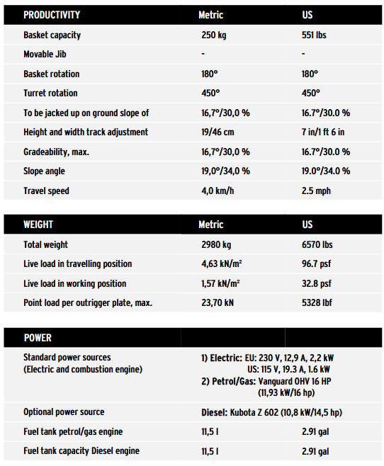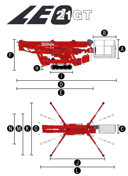 With 250 kg platform capacity LEO21GT still achieves 12,00 m side reach. That is always enough capacity to take two persons including tools or material: No compromises and unrivalled in this height segment.