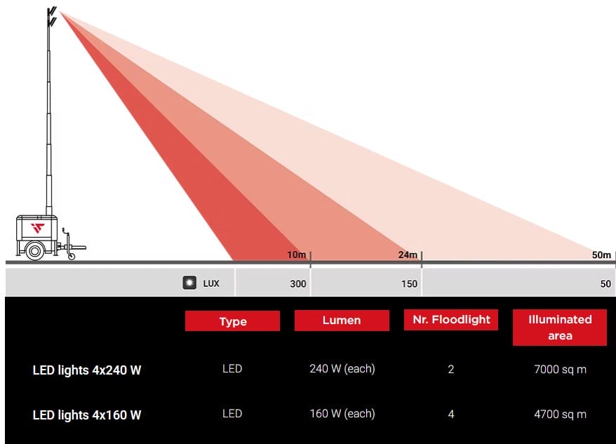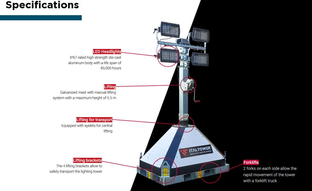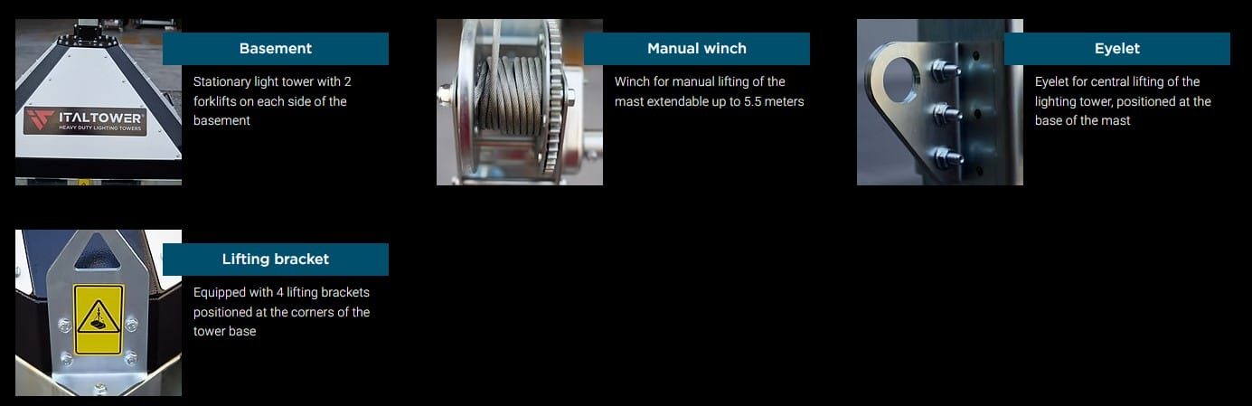 - ITALTOWER LIGHTING TOWER WITH MANUAL LIFTING SYSTEM STREET PLUG-IN UP TO 5.5M - ILLUMATED AREA UP TO 4700 SQM