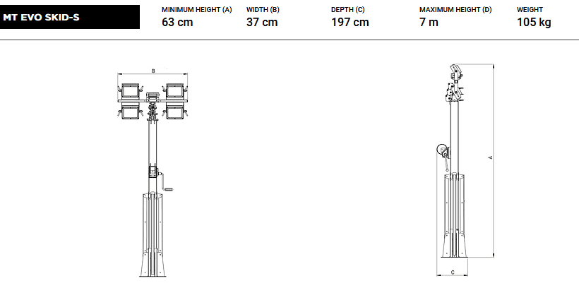 ITALTOWER MT EVO SKID - S | WITH MANUAL LIFTING SYSTEM KT UP TO 5.5/7M | ILLUMATED AREA UP TO 3000 SQM