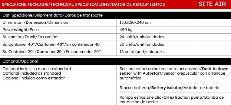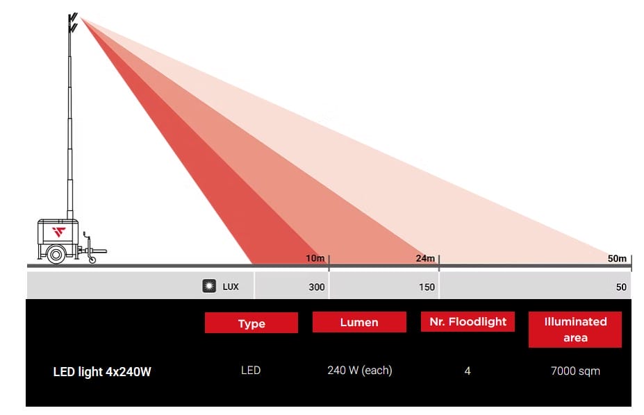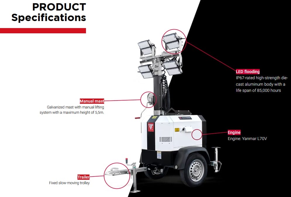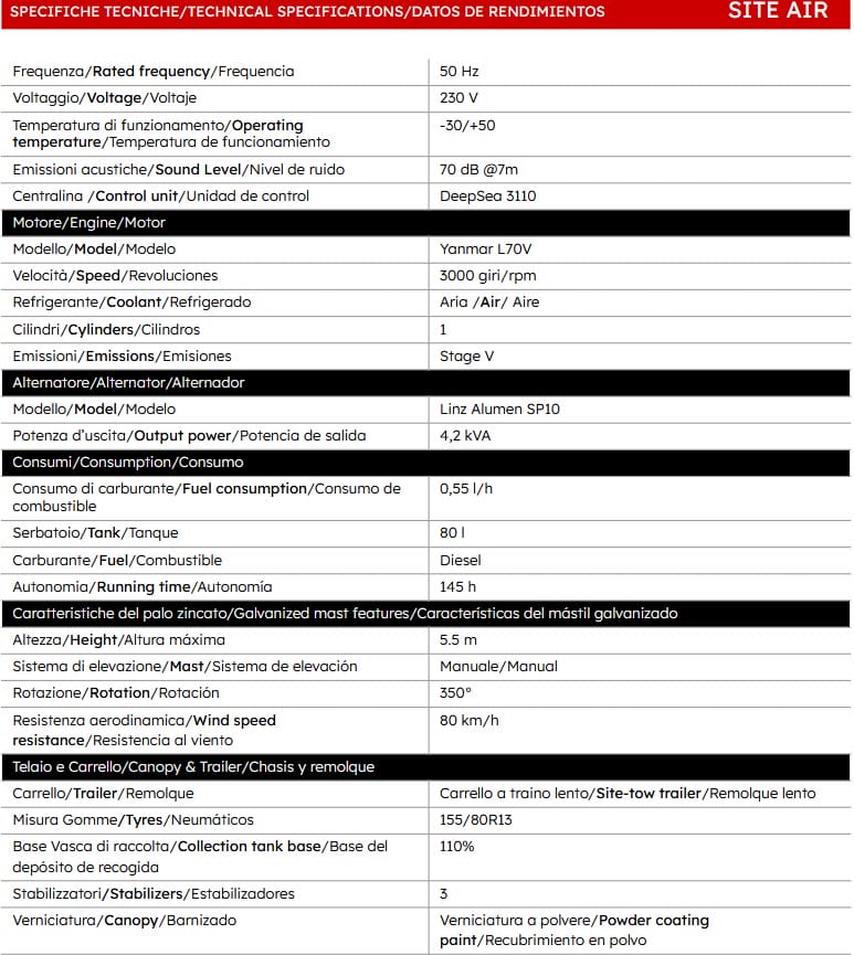 ITALTOWER LIGHTING TOWER WITH POWER GENERATOR & MANUAL LIFTING SYSTEM SITE AIR UP TO 5,5M ILLUMINATED AREA 7000 SQM