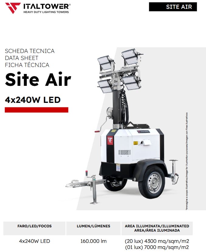 - ITALTOWER LIGHTING TOWER WITH POWER GENERATOR & MANUAL LIFTING SYSTEM SITE AIR UP TO 5,5M ILLUMINATED AREA 7000 SQM