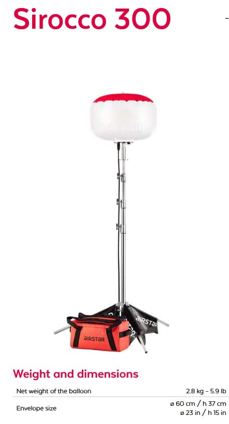 - AIRSTAR BALLOON LIGHT TOWER SIROCCO 300 LITE UP TO 4Μ - 22.000LM