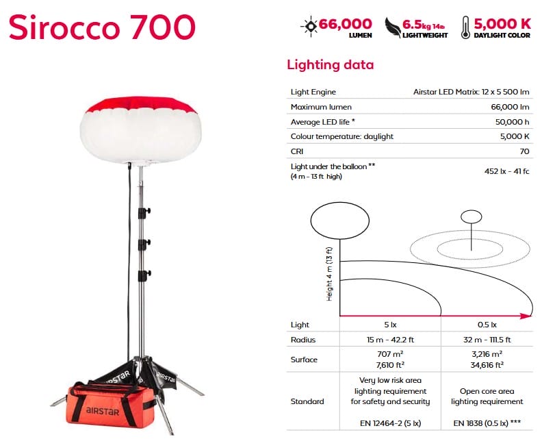 - AIRSTAR BALLOON LIGHT TOWER SIROCCO 700 LITE UP TO 5,3Μ - 66.000LM