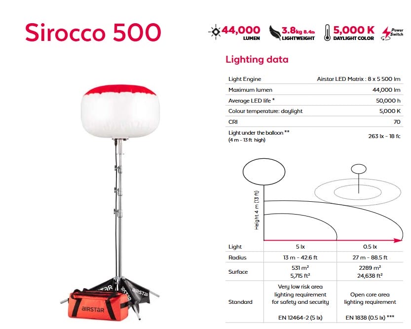 - AIRSTAR BALLOON LIGHT TOWER SIROCCO 500 LITE UP TO 4.8Μ - 44.000LM