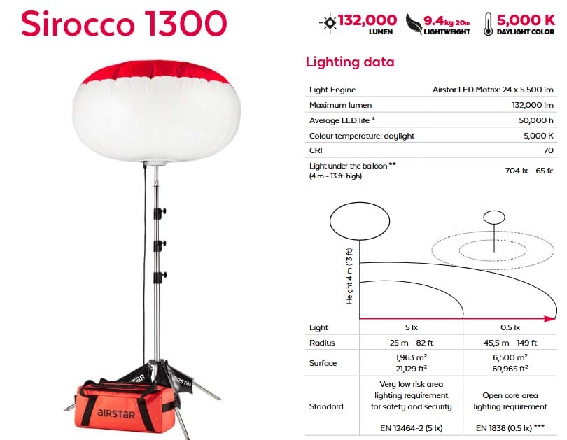 - AIRSTAR POWER BALLOON LIGHT TOWER SIROCCO 1300 UP TO 6,3Μ - 132.000LM