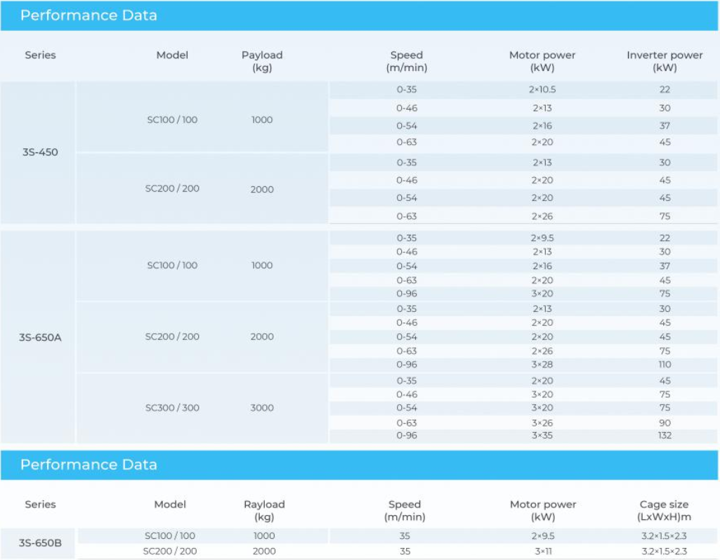 3S INDUSTRY CONSTRUCTION HOIST SERIES 450/650A/650B 1000KG-2000KG