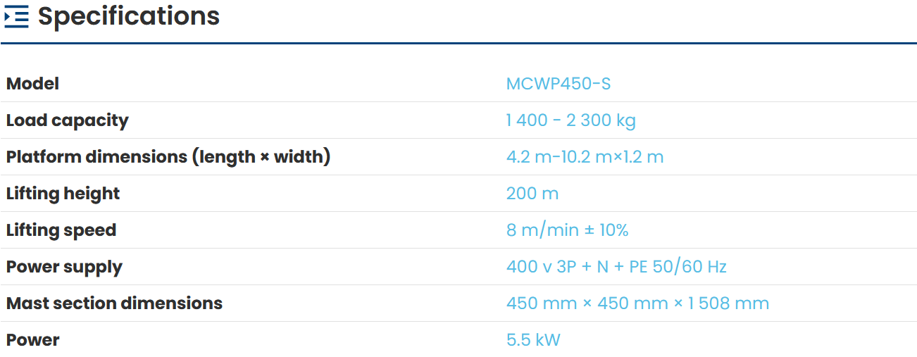- 3S INDUSTRY SINGLE MAST CLIMBING WORK PLATFORM MCWP450-S - 200M 2300KG