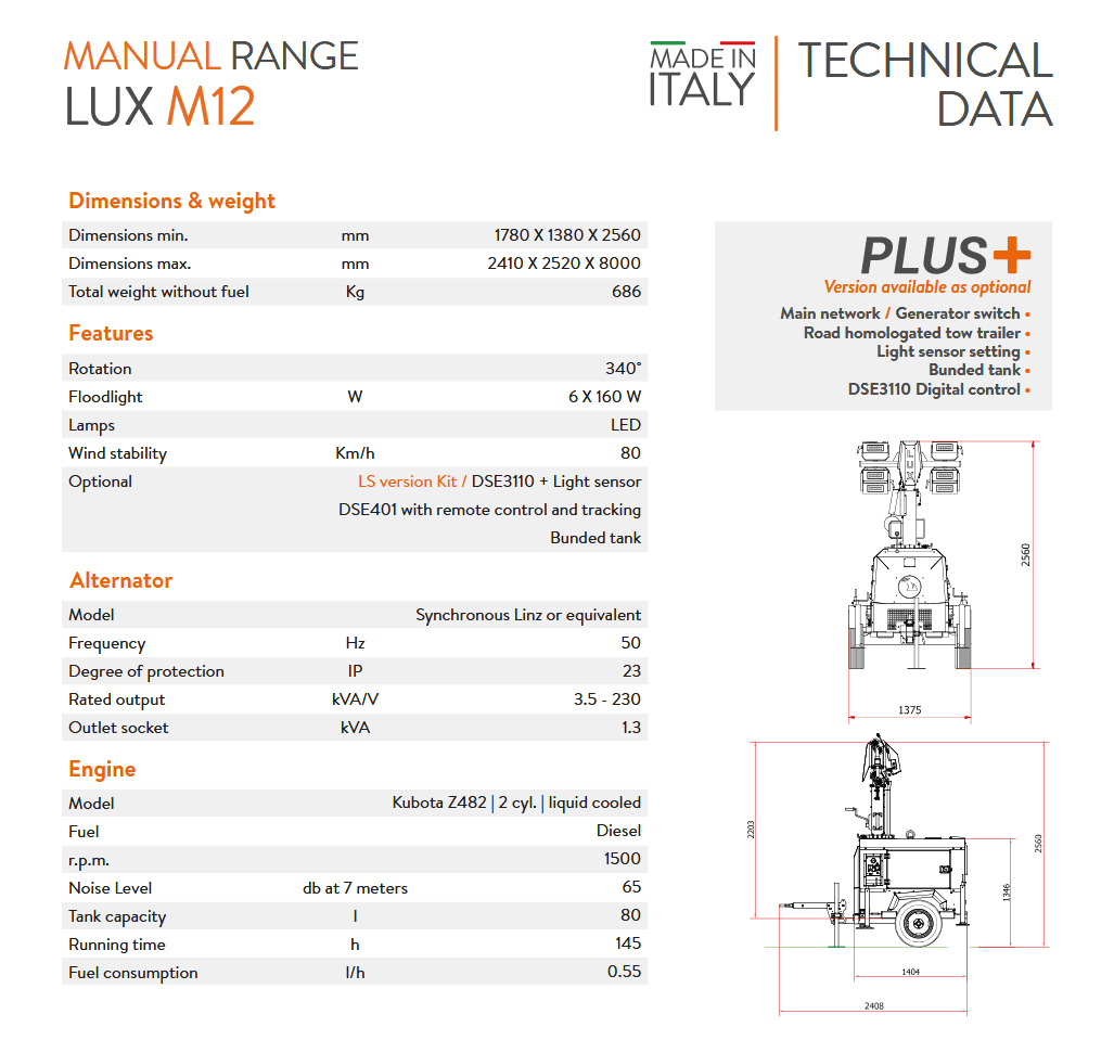 - LUXTOWER LUX M12 PLUS | High‑Power Lighting Tower up to 7000 m²