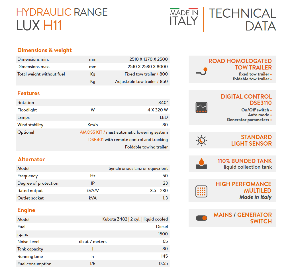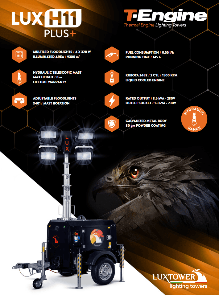 The Luxtower H11 is the result of collaboration with top European rental companies, delivering a complete, reliable, and high-performance lighting tow..